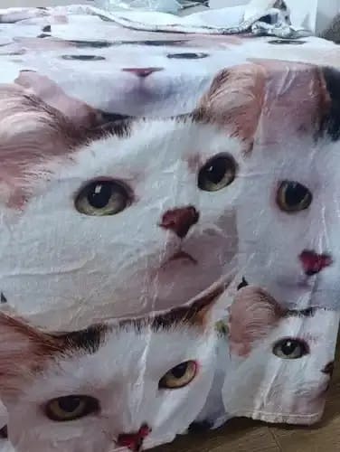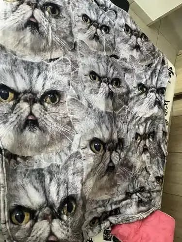 El estampado es hermoso, la carita de mi garita se ve perfecta y quedaron súper bien acomodadas en toda la cobija, es delgada, eso sí, pero es más como para usarla al ver tv y ya. Si pueden escojan la grande de una vez, al tenerla en las manos se van a arrepentir como como yo de haber comprado una mediana y no la grande, es espectacular y el toquecito del aroma tan rico con el que viene!!! Casi me mata de amor.